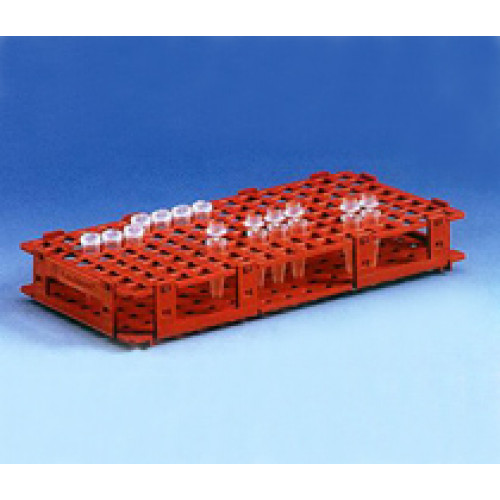 SUPORTE P/128 TUBOS DE REAÇÃO (TIPO EPPENDORF 1,5ml) EM PP VERMELHO C/ POSIÇÕES ALFANUMÉRICAS AUTOCLAVÁVEL BRAND