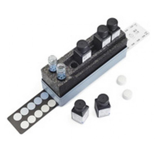 Em solução fracamente ácida o cloro livre f reage com dietil-p-fenilenodiamina (DPD), para formar um corante vermelho-violeta. A concentração de cloro é medida semiquantitativamente por comparação visual da cor da solução de medição com os campos de cor de um cartão de cor.