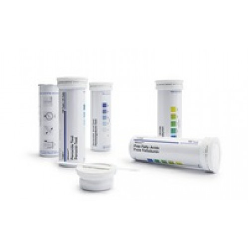Método: colorimétrico com tiras de teste 50 - 100 - 200 - 300 - 500 - 700 - 1000 - 2000 mg/l para até 100 testes.