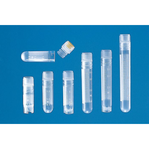 Em polipropileno de alta qualidade, resistente até -196 C. Ideais para armazenagem de material biológico (ex: microorganismos, células, etc.)