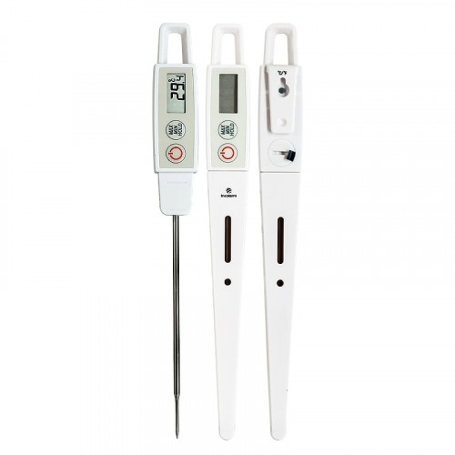 Termômetro tipo espeto com resolução decimal e precisão de até 0,5°C de acordo com a faixa de temperatura. Fabricado conforme a Norma HACCP para Análise de Perigos e Pontos Críticos de Controle. Indicado para uso em todos os processos relacionados a alimentos, bebidas, laboratórios e medições em geral.