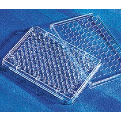 PLACA 96 POÇOS FUNDO PLANO EM PS ESTÉRIL PARA CULTURA CÉLULAS SUPERFÍCIE TRATADA, COM TAMPA (EMB C/ 100 UND) CORNING