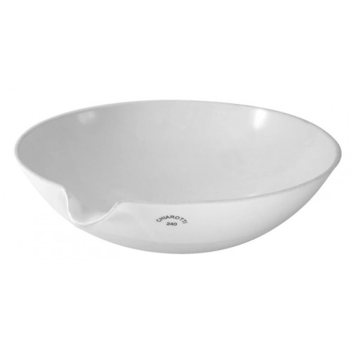 Fabricada em porcelana refratária, tendo como elemento básico o óxido de alumínio e zirconio, são esmaltadas com exceção da borda, apoio natural para a queima. Normalmente usada para evaporação de líquidos, em areia aquecida, chapa ou Bico de Bunsen e, em alguns casos, em múfulas a, no máximo, 600 graus centígrados. Suportam bem choque térmico de 400 para 20 graus centígrados. Dada sua forma, quanto maior o diâmetro, maiores deverão ser os cuidados no aquecimento, que deverá ser lento e gradual, observando idênticos cuidados no resfriamento. As medidas de capacidade bem como do diâmetro interno são tomadas internamente, abaixo do bico.