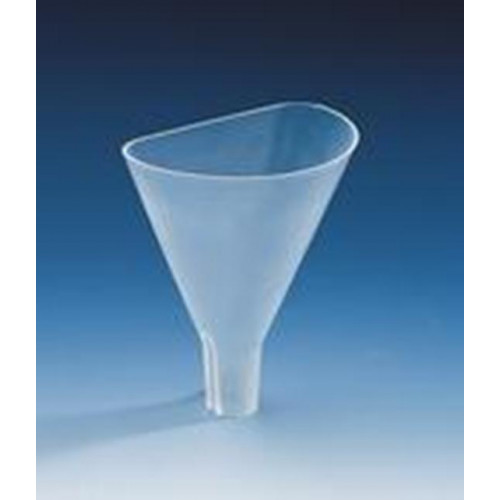 Em PP. Corpo do funil com um lado plano e ponta da haste adaptada a juntas esmerilhadas.Ideais para introduzir reativos líquidos ou sólidos em frascos de vários tamanhos de bocas.