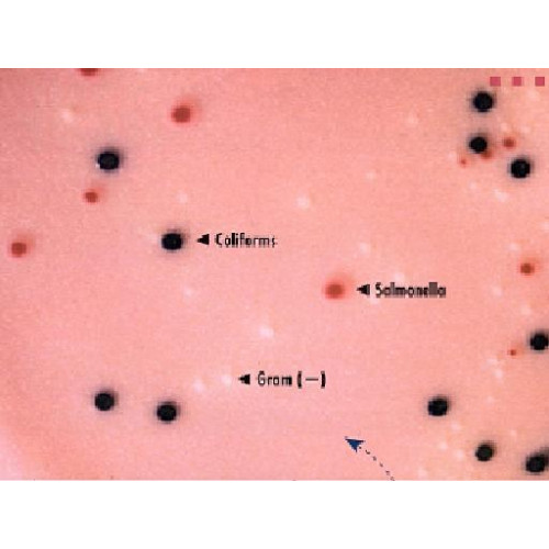 Todos os microorganismos presentes na amostra são enriquecidos durante o pré-enriquecimento não-seletivo em Salmosyst ® Caldo Base. Na sequência é adicionado o reagente seletivo na forma do Salmosyst ® Suplemento Seletivo (comprimido), o crescimento da flora acompanhante é inibido, mas as Salmonelas continuam a crescer.