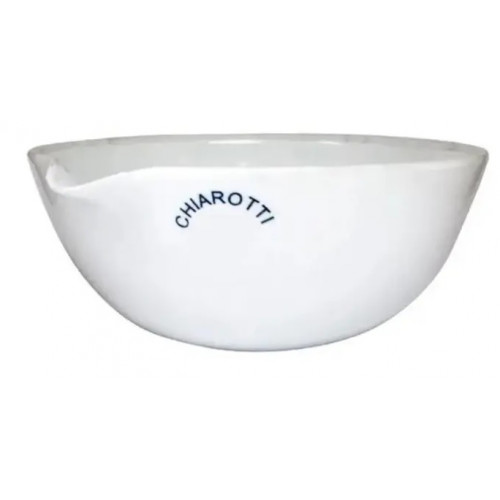 Fabricada em porcelana refratária, tendo como elemento básico o óxido de alumínio e zirconio, são esmaltadas com exceção da borda, apoio natural para a queima. Normalmente usada para evaporação de líquidos, em areia aquecida, chapa ou Bico de Bunsen e, em alguns casos, em múfulas a, no máximo, 600 graus centígrados. Suportam bem choque térmico de 400 para 20 graus centígrados. Dada sua forma, quanto maior o diâmetro, maiores deverão ser os cuidados no aquecimento, que deverá ser lento e gradual, observando idênticos cuidados no resfriamento. As medidas de capacidade bem como do diâmetro interno são tomadas internamente, abaixo do bico.