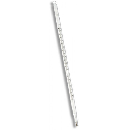Instrumento de líquido em vidro, com enchimento de Hg.